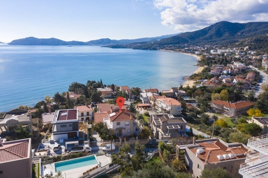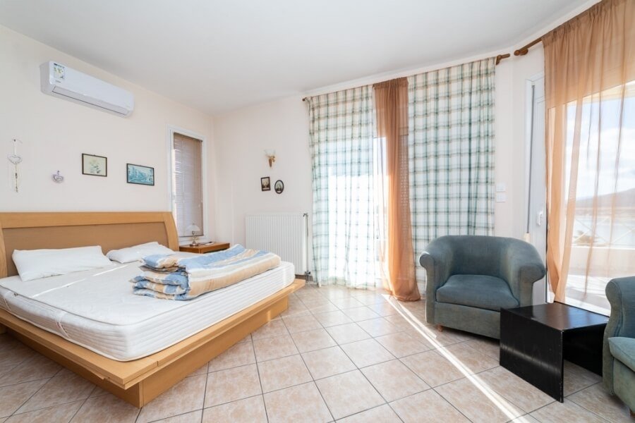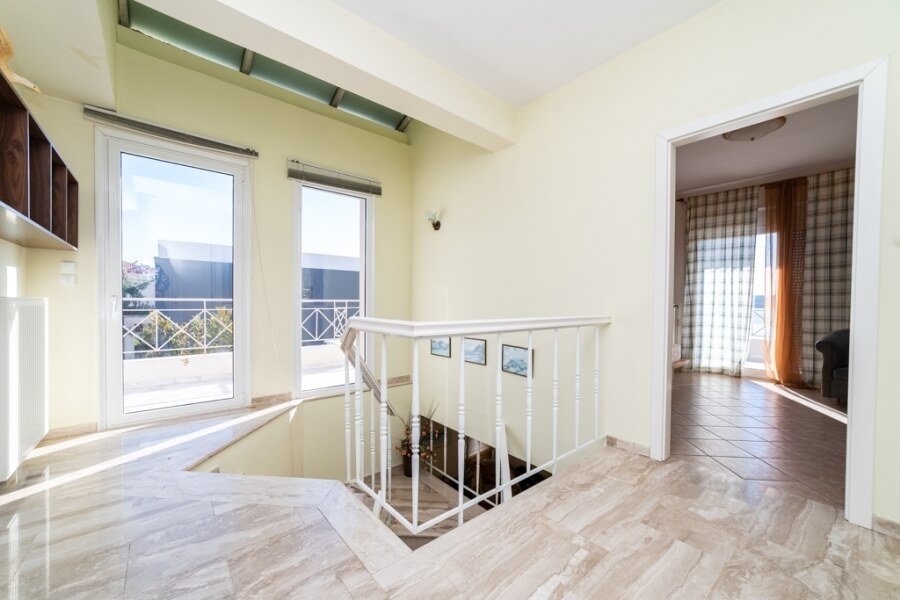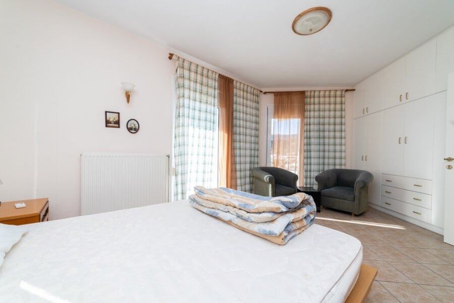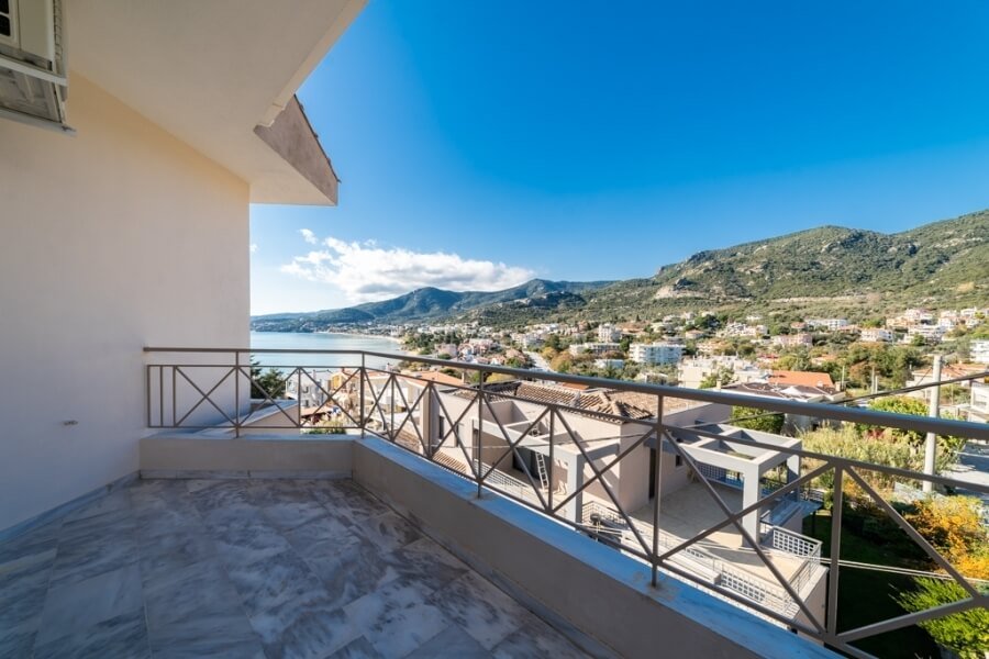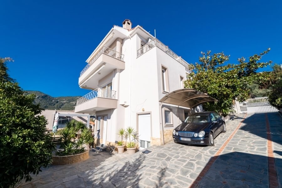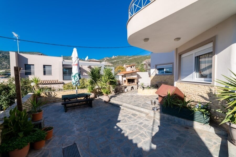 Villa of 280sqm in Palio.Excellent luxury villa of 280sqm on a plot of 500sqm. Built on 3 levels with the ground floor being a self-contained apartment and a 1st and 2nd floor with a main residence. The ground floor consists of 2 rooms, a living room, a kitchen, a bathroom and a storage room. It has independent heating and an energy fireplace. The first floor consists of a living room with an energy fireplace, kitchen, dining room, WC and a room. On the 2nd floor there are the 3 main rooms of the residence, a bathroom with a jacuzzi and a storage room. It has an oil burner as a means of heating in addition to two energy fireplaces, marble floors, BBQ in the garden, garages and terraces with spectacular views.